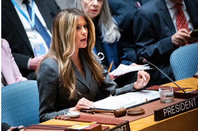 U.S. first lady Melania Trump presided over a U.N. Security Council meeting on Monday focusing on children in conflict, one of her signature issues, and acknowledged she was doing so in “challenging times” as the United States has joined Israel in attacking Iran.