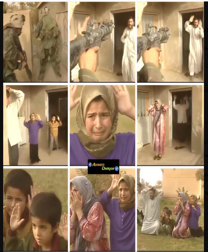 From Twitter: The Gulfis are calling on the Americans and saying that they spread peace and democracy in the world. This picture is from an American invasion in 2003 of an Iraqi family’s home.