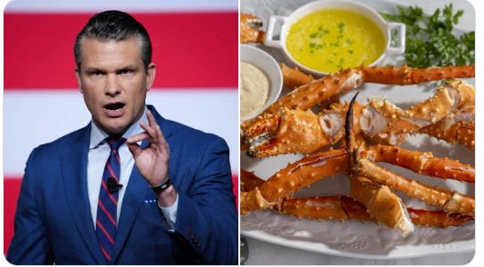 he Pentagon has spent lavishly on luxury food: 6.9M on lobster tail, 2M on Alaskan king crab, 15.1M on ribeye steak, plus 124K on ice cream machines and 139K on doughnuts. Meanwhile, millions of Americans lost SNAP benefits with new restrictions on their food assistance.