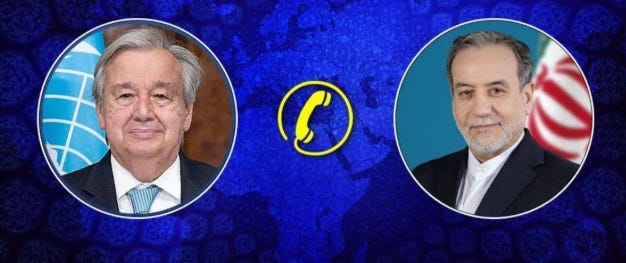 Iran’s Foreign Minister Abbas Araghchi held a phone conversation with UN Secretary-General António Guterres, during which he outlined the consequences of the recent American-Zionist aggression against the Islamic Republic of Iran.