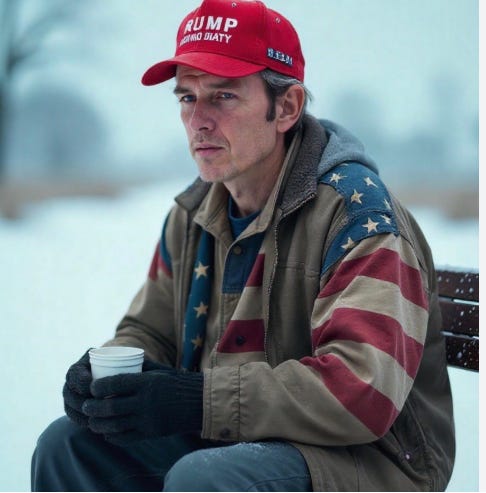 His phone screen with the word “Proud Republican” and then Semen Drip Trump’s face he was scrolling upon. This guy is using homeless shelters, probably got ER services and medical care for the accident, ambulance ride, all expenses paid because he’s indigent, and he has that cunt on his phone, and on an Obama phone, no less.
