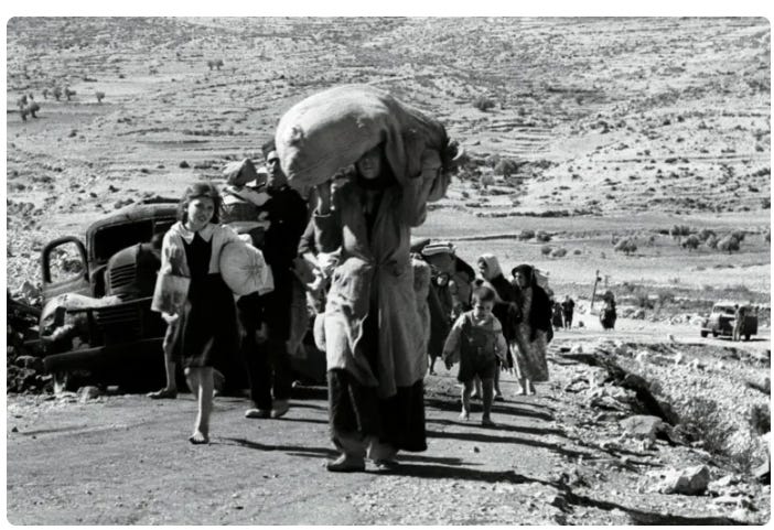 Palestinians in 1948, five months after the creation of Israel, leaving a village in the Galilee [Reuters]