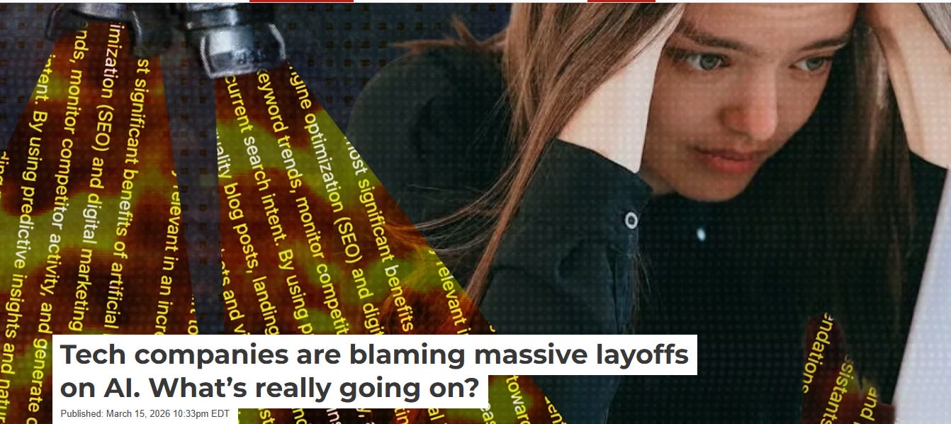 These are meaningful signals, but they are sector-specific and concentrated – not the evidence of sweeping displacement that corporate announcements often imply. That gap between the evidence and the rhetoric raises an obvious question: what else might be driving these decisions?
