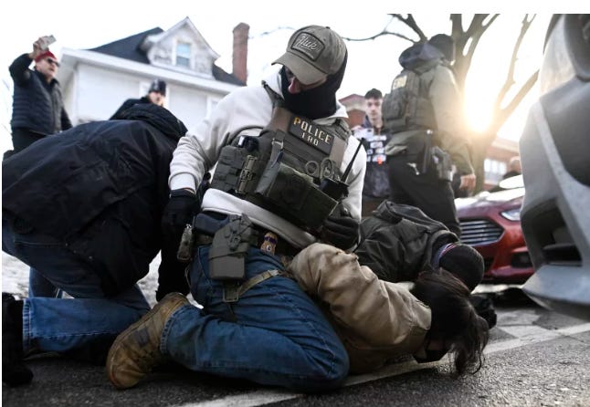 Video of the incident, reviewed by NPR, shows a masked federal officer running at Ben and slamming him to the ground. Three immigration officers pinned him down and dragged him to their vehicle. Ben says he was held in custody for about three hours. Before his release, officers photographed and fingerprinted him. Then, before Ben realized fully what was happening, an officer ran a swab, similar to a Q-tip, along the inside of his cheek.