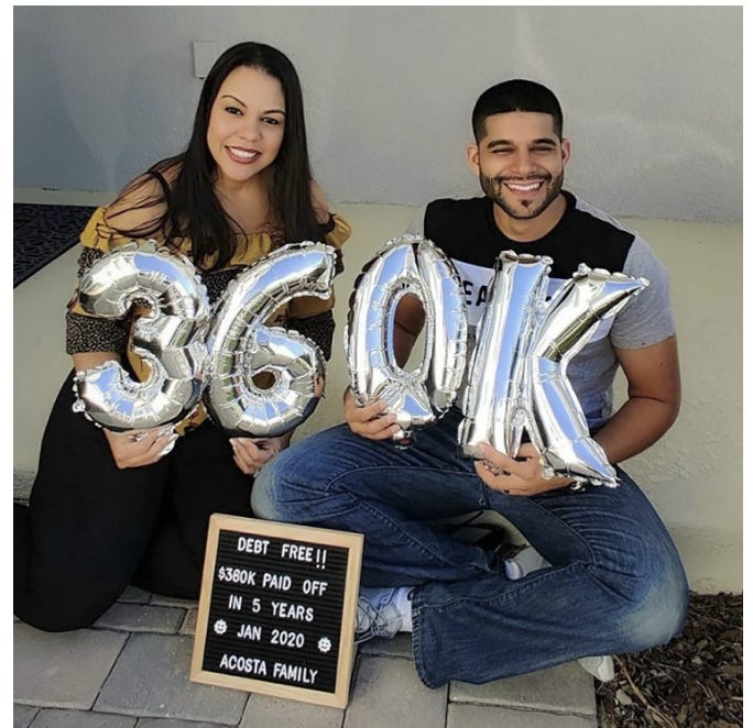 They are murderers, but so so cute: Luis (right), a circuit design engineer at Lockheed, celebrates with his wife after paying off more than $300,000 in student debt, as featured in a promotional message on Lockheed Martin’s website.