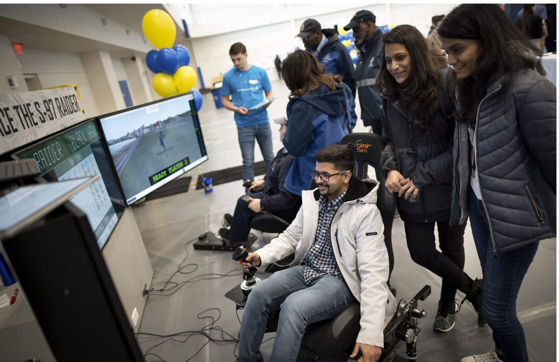 New Haven students enjoy a Lockheed Martin flight simulator at a career fair on Feb. 19, 2020. Lockheed is not only one of the world’s biggest weapons manufacturers, but one of the biggest employers of software engineers in North America.