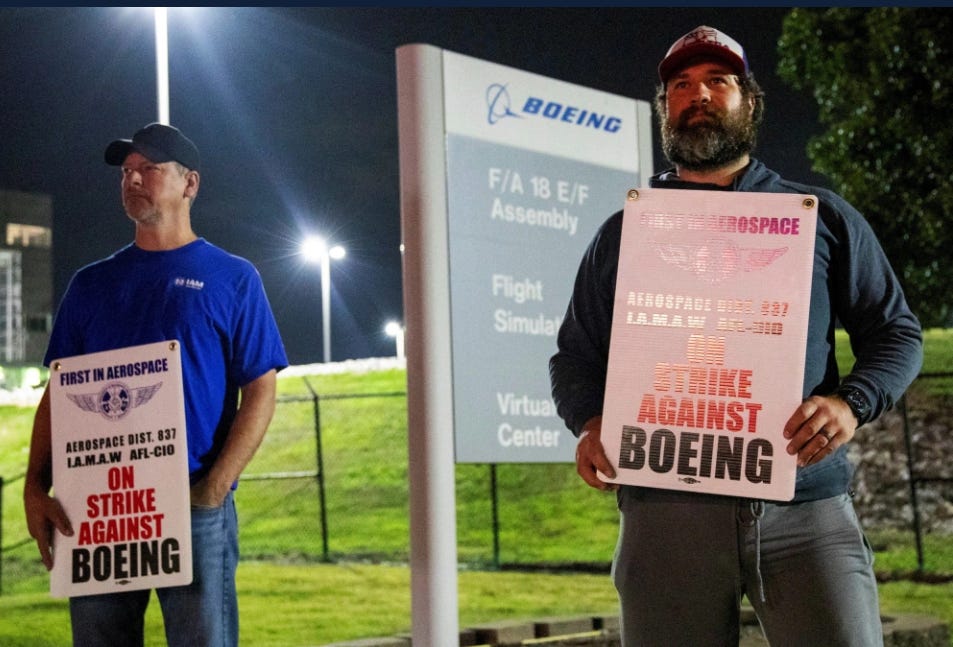 Thousands of Boeing workers who build fighter jets and weapons go on strike. For HIGHER pay: