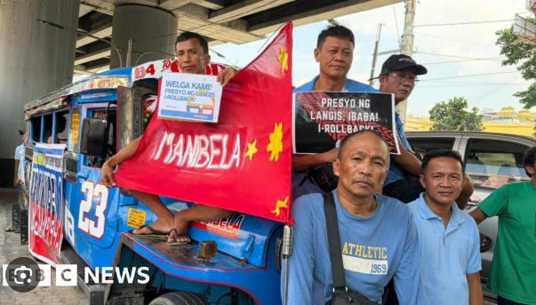 Transport workers in Manila walked off the job to protest the rising cost of fuel, as the war in the Middle East causes a national energy emergency.