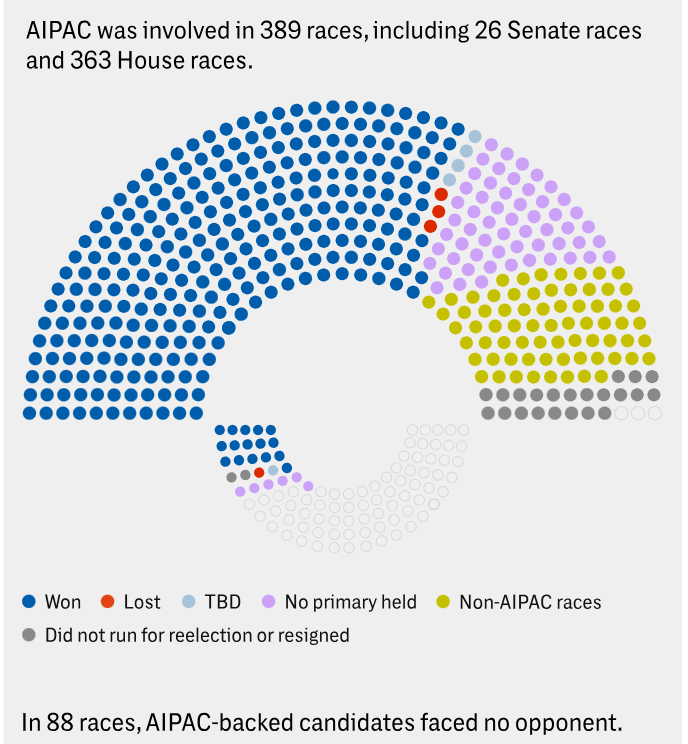 AIPAC has spent money on more than 80 percent of the 469 seats up for reelection this year.