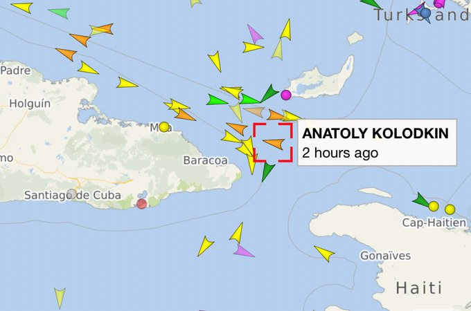 For fuck’s sake — Russia, big bad tough Russia? The Russian tanker Anatoly Kolodkin, sanctioned by the US, would be minutes away from entering Cuban territorial waters with approximately 730,000 barrels of crude oil. Almost impossible for a US intervention at this point.