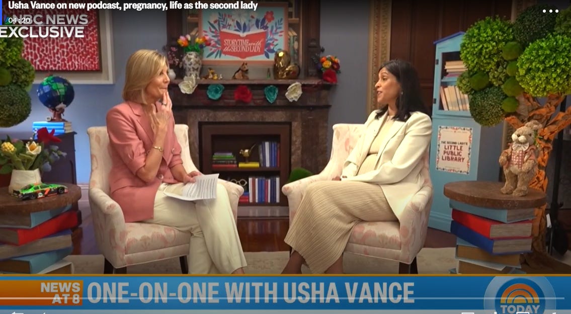 So we get more whore news: Usha Vance on disagreements with JD Vance, 2028 and shopping at Costco. The second lady, who was registered as a Democrat until at least 2014, told NBC News she sometimes has thoughts that are “idiosyncratic” and don’t fit neatly with one political party.