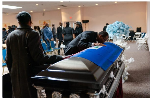 [The funeral for Emmanuel Damas, 56, who died in federal immigration custody this month. His death has galvanized opposition to collaboration between ICE and local and state authorities in Boston]