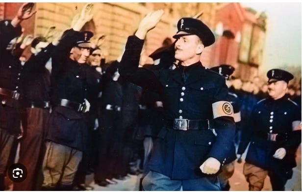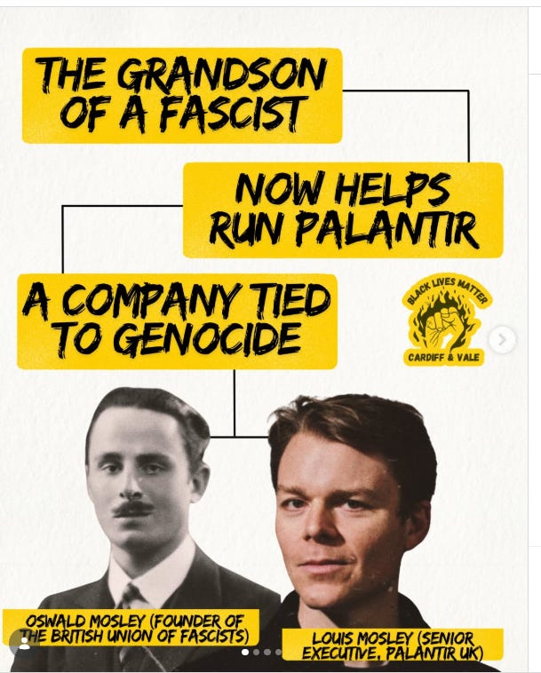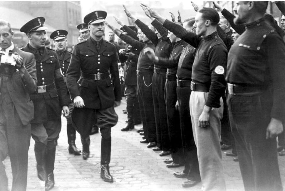 [Grandfather: Sir Oswald Mosley (6th Baronet): The most prominent “fascist father” figure in the family line, Sir Oswald founded the British Union of Fascists (BUF) in 1932. He was a former Member of Parliament who became a pariah for his antisemitism and ties to Adolf Hitler and Benito Mussolini.]