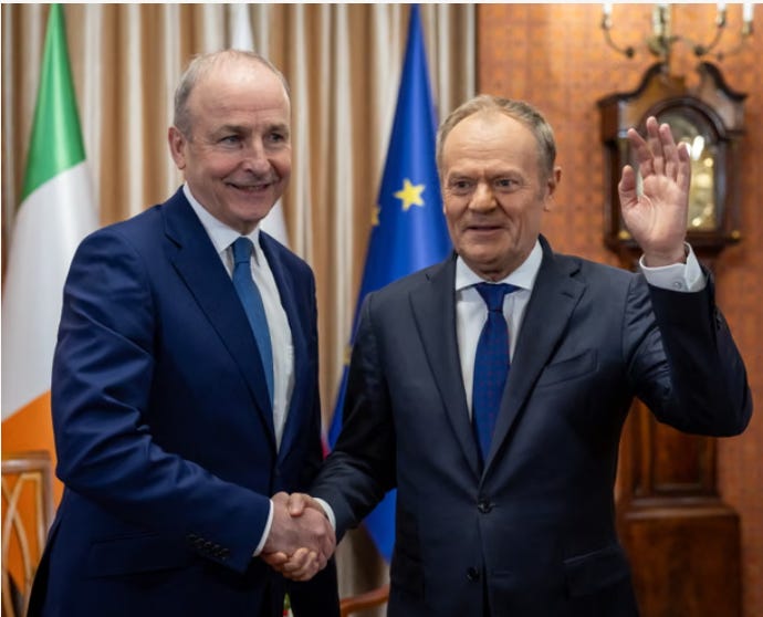 Donald Tusk and Micheál Martin say reported phone call with Moscow on sanctions confirms Hungary ‘doing the bidding for Russia’ within EU