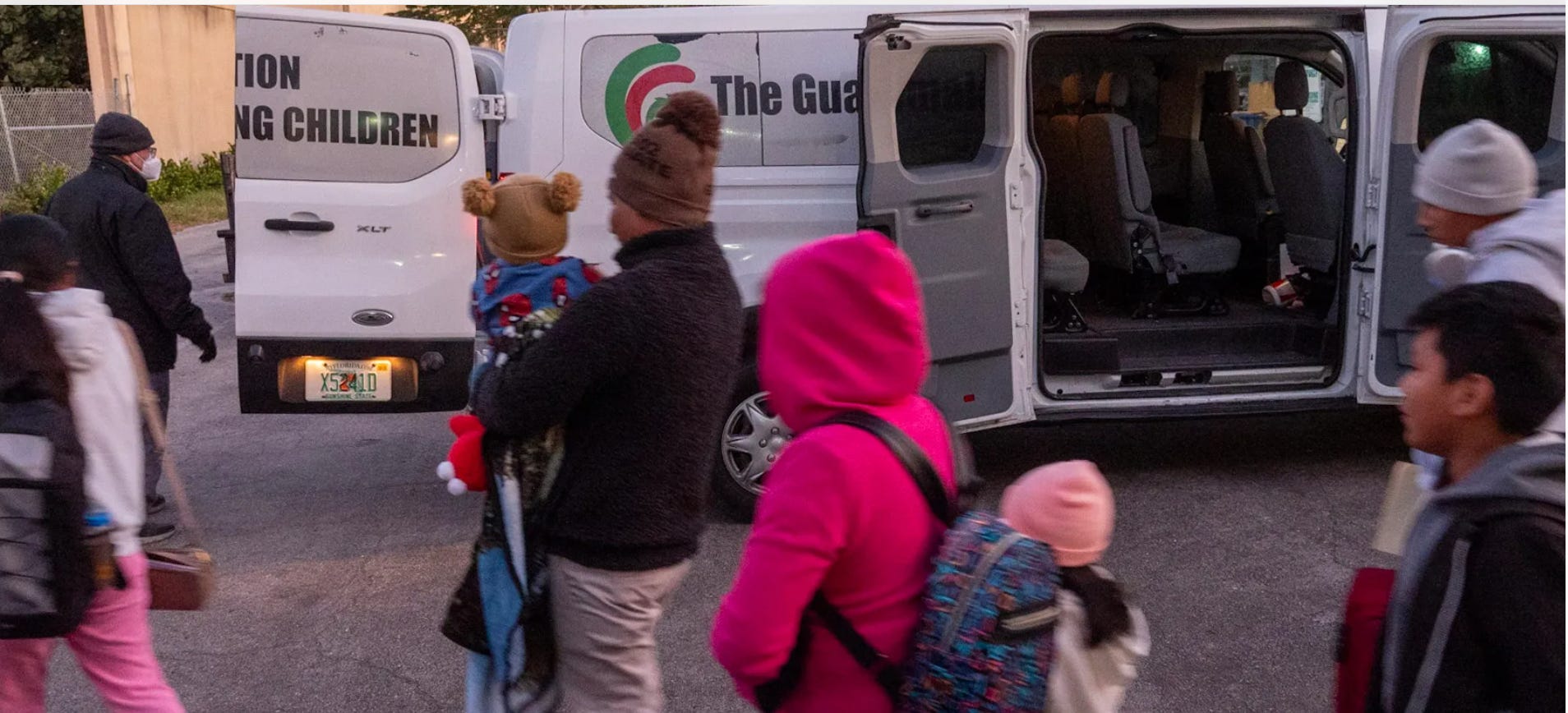 [U.S. citizen children board a van in early February before taking a flight from Fort Lauderdale, Florida, to Guatemala, to be reunited with parents who were deported]
