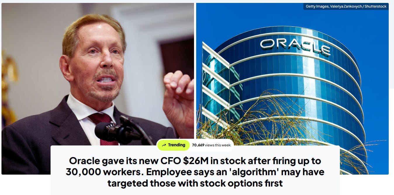 Meanwhile, some laid-off workers have raised questions on LinkedIn and workplace forums about how Oracle chose who to cut — with one 30-year veteran suggesting the company may have targeted employees with outstanding stock options.
