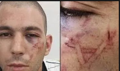 [Star of David branded into a Palestinian’s face while he was being held hostage by the Zionist occupation (2023)]