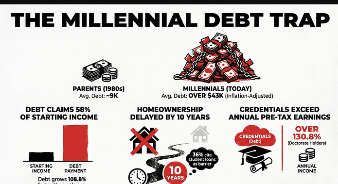 Millennials as a cohort hold 46.6% of all outstanding student loan debt in the United States, despite representing a single generational slice of the borrowing population.
