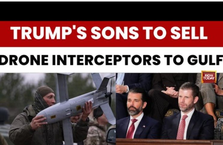 A company backed by Donald Trump Jr. and Eric Trump is trying to sell military drone interceptors to Gulf countries facing attacks from Iran, raising ethical concerns about profiting from a conflict tied to their father, Donald Trump. Critics argue the situation creates potential conflicts of interest, suggesting foreign governments may feel pressure to do business with the president’s family. The company says its technology is meant to help defend against drone attacks and strengthen U.S. manufacturing. The move highlights broader concerns about the Trump family expanding business ventures while in political power.