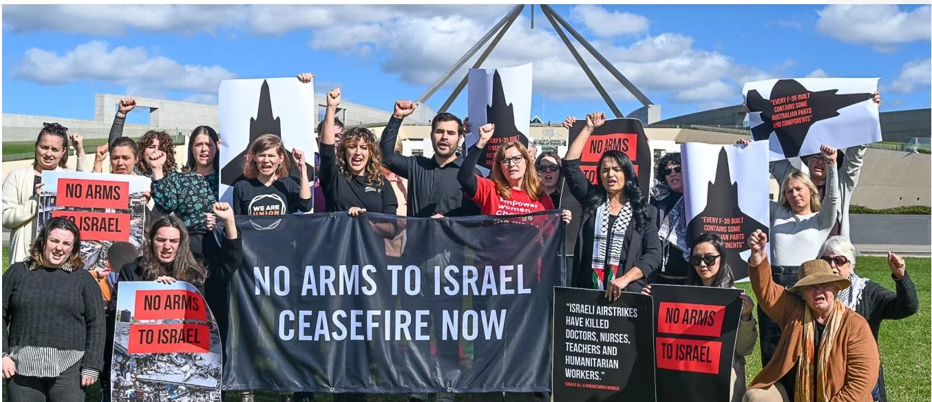 [“The news of Australian components being legally exported to the United States and then sent on to Israel to be used in their genocide against Palestinians in Gaza is precisely what Amnesty International has been warning the Australian government against.”]