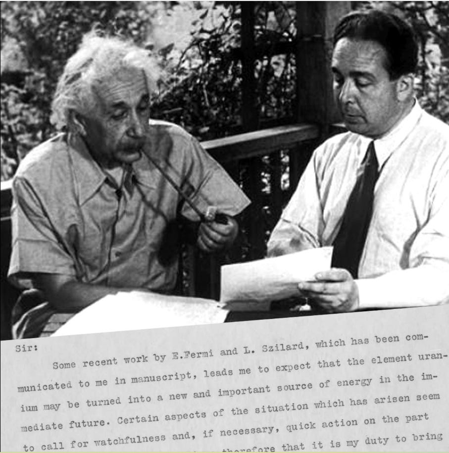 Monsters, man, Oppen-Monster-Heimers. Einstein Cunts…. On this day in 1939: Albert Einstein, acting at the behest of Leo Szilárd, wrote to President Roosevelt telling him of the possibility of building an atomic bomb. It was the first step in what became the Manhattan Project.