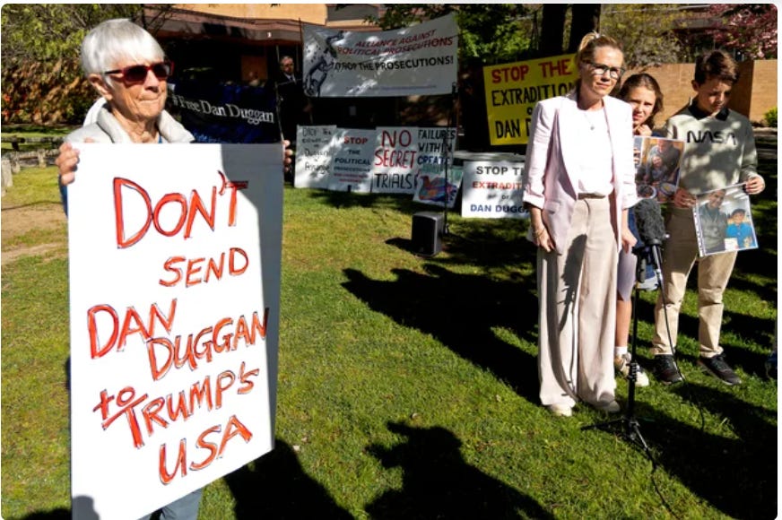 Duggan’s wife and mother of his six children, Saffrine Duggan, told reporters outside the court in Canberra that his lawyers would consider a further appeal. Lawyers are also asking Dreyfus’s successor as attorney-general, Michelle Rowland, to reverse the extradition order.