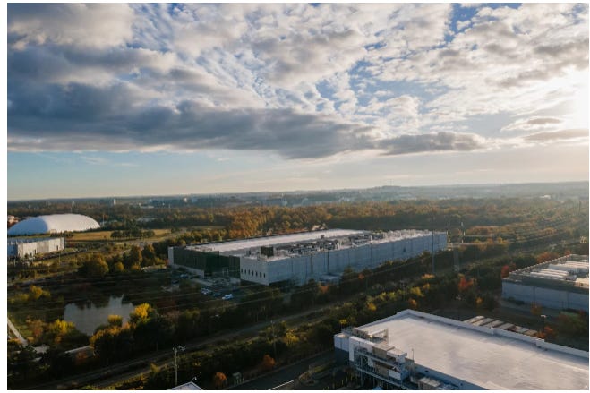 [A Meta data center in Ashburn, Va., in 2025. Virginia is the state with the most data centers.]