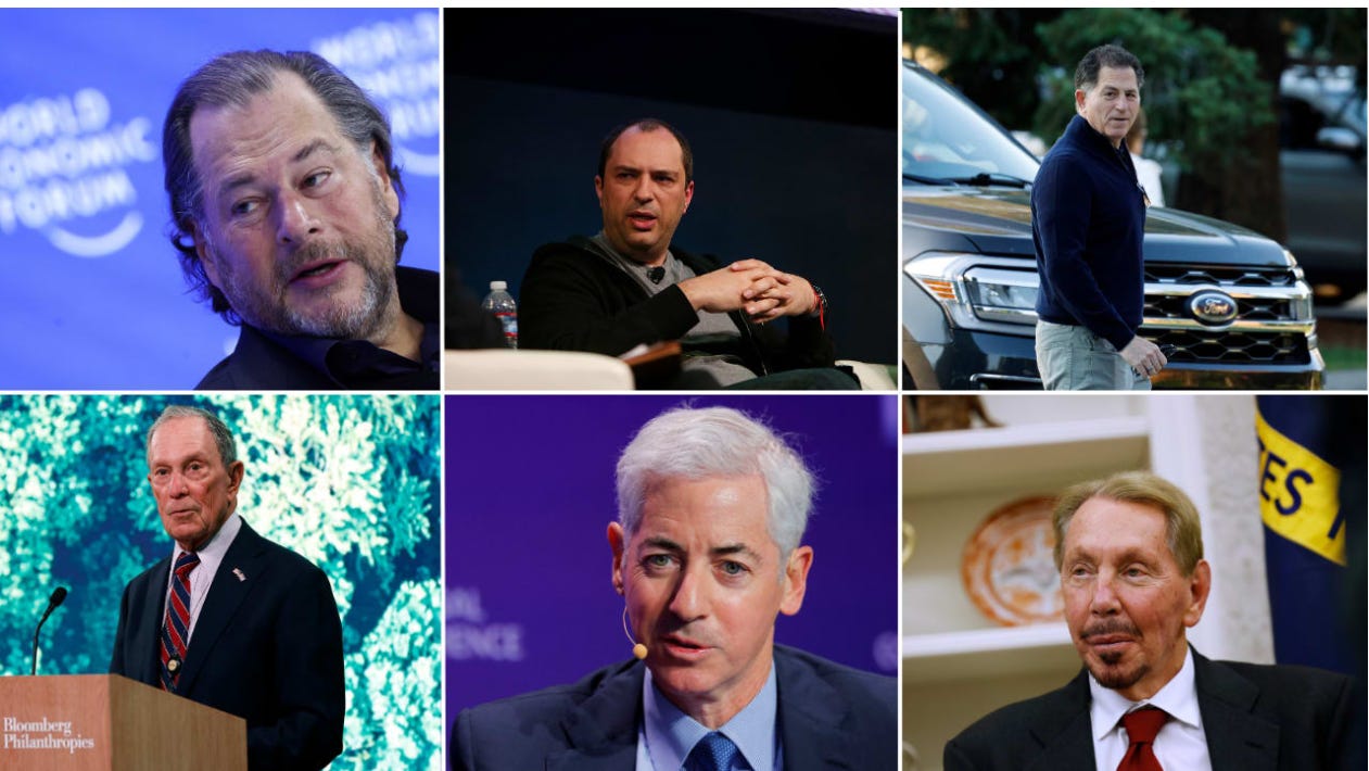 Modern Jewish Terrorists: (L-R): Marc Benioff, Jan Koum, Michael Dell, Michael Bloomberg, Bill Ackman, Larry Ellison