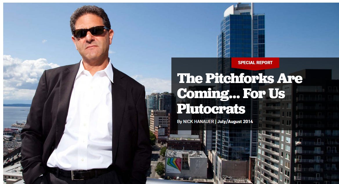 Look at this fucking JEW: Back in 2014, I warned my fellow plutocrats: “The pitchforks are coming.” Not because people hate wealth—but because they hate being lied to,