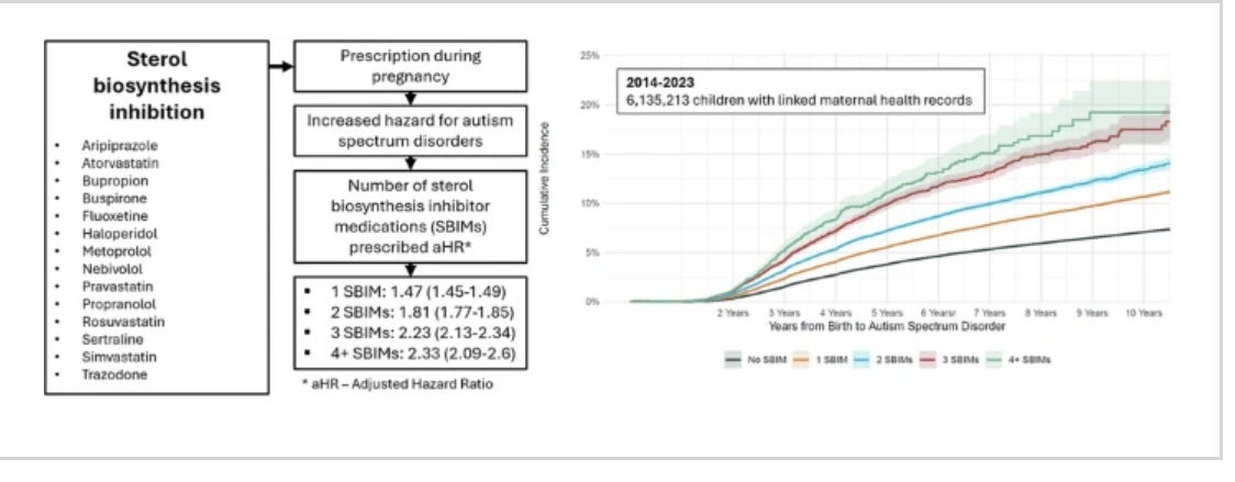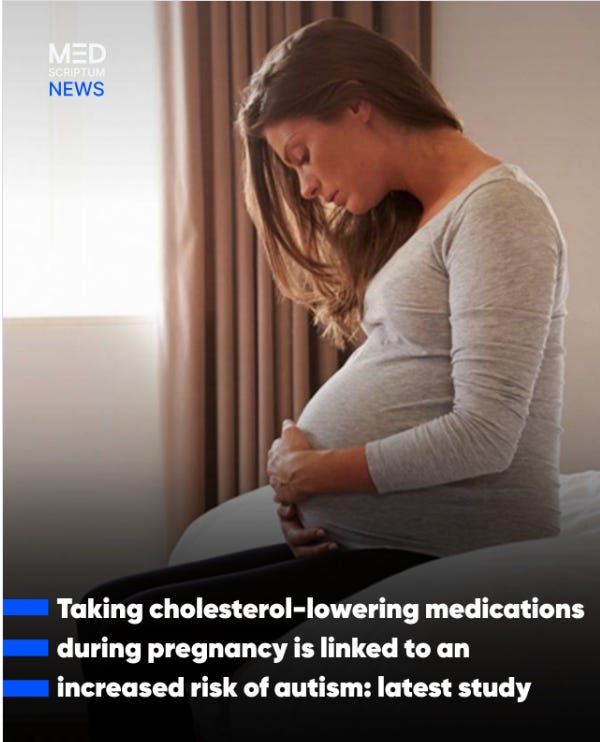 This large U.S. study of over 6 million pregnancies found that commonly prescribed medications that interfere with cholesterol synthesis during pregnancy were associated with a roughly 47 percent increased risk of autism in offspring.