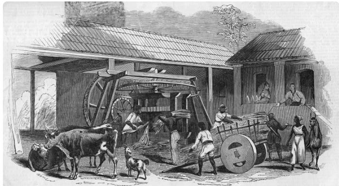 We then turn to the raw material, sugar cane, the white gold that was at the origin of the compulsory slave trade.