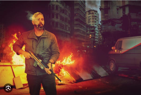 as being from here or there, as pepper spray fills in the air