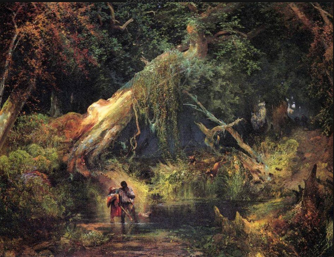 Thomas Moran, Slave Hunt, Dismal Swamp, Virginia, (1861-62). Oil on canvas, 86.4 × 111.8 cm. Philbrook Museum of Art.