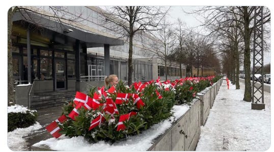 Here are the bouquets left in the snow for the dead,