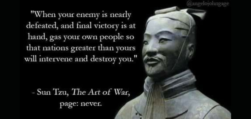 [2018 meme debunking accusations of chemical weapons use by Syria. Image: @angelojohngage]